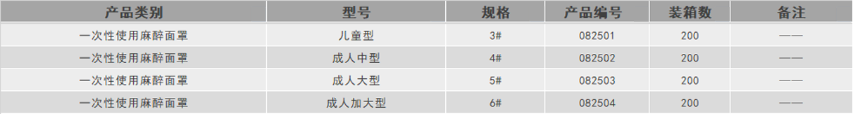 一次性使用麻醉面罩