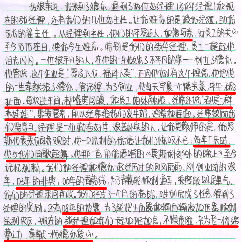 08年北京奧運會前期,我們的產(chǎn)品入選了,需要加急、加大對產(chǎn)品的檢測,記得有一次結(jié)果出來的比較晚,張總經(jīng)理一直陪著我們一起等待結(jié)果,結(jié)束之后又找車把我們安全的送回家。當(dāng)時領(lǐng)導(dǎo)對待任何事情都親力親為,讓我很受感染。各項工作都在有條不紊的進行著,讓我學(xué)到很多書本上沒有的知識,更多的是認(rèn)識到自己身上的責(zé)任。