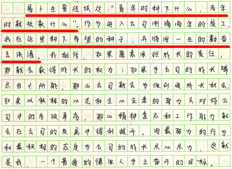 青春應(yīng)該做什么?既然擁有了人生最寶貴的歲月,那么,在這樣的日子里,我們應(yīng)該做些什么呢?現(xiàn)在公司給我們提供了一個表演的舞臺,但能不能譜寫出美妙華麗的樂章,就靠自己了。青春要從平凡的職業(yè)做起,從微不足道的小事做起;青春要從艱苦的奮斗做起,從無私的奉獻做起;青春要從愛崗敬業(yè)做起,從盡職盡責(zé)做起;青春的內(nèi)涵如此豐富,青春的色彩如此斑斕,每一個人都應(yīng)該認(rèn)真把握青春的美好時光,讓她在平凡的崗位上發(fā)光,讓她在艱苦的奮斗中發(fā)光,讓她在辛勤的汗水里發(fā)光,讓她在無私的奉獻里發(fā)光,每一個人都應(yīng)該擁有一段無悔的青春歲月。